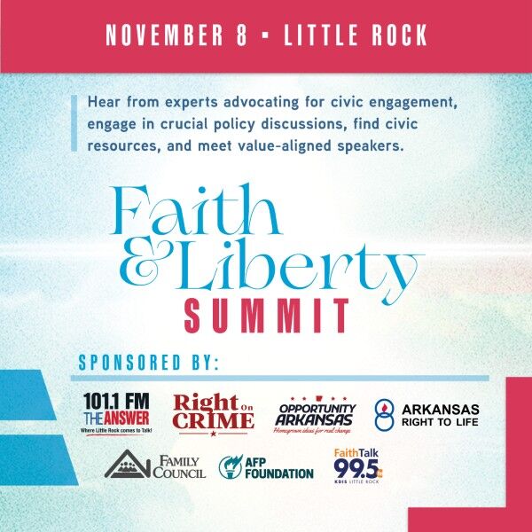 This come-and-go day-long event is designed to highlight the work of faith and liberty-minded organizations while equipping Arkansans to engage more deeply in civic life.